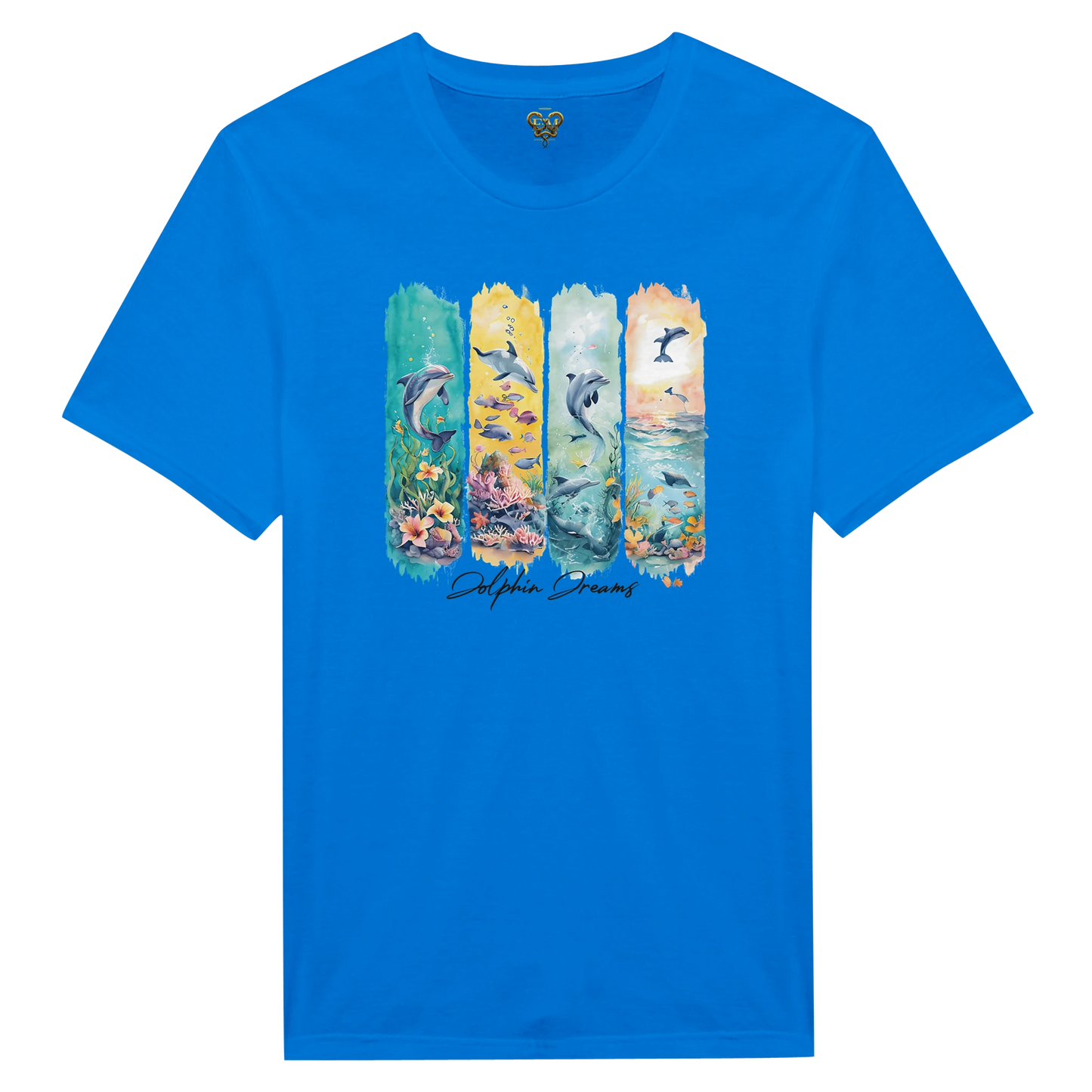 Sukella kesäisiin unelmiin ja vapauden tunteeseen Dolphin Dreams -T-paidan kanssa! Vaaleat, raikkaat sävyt ja leikkisä delfiini-design tuovat mieleen loputtomat kesäpäivät ja meren lempeän kohinan.